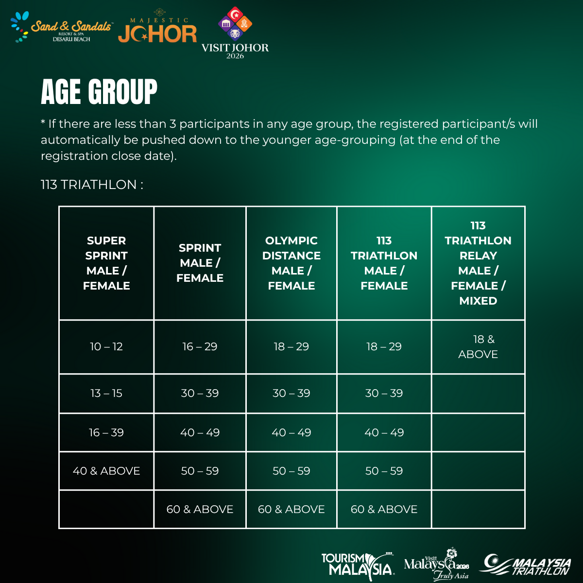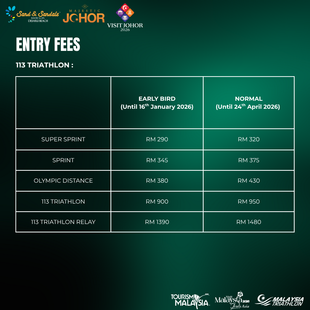 - Changes to team relay members are permitted until a month before registration closing date. An admin fee of RM 50 applies per change of person.